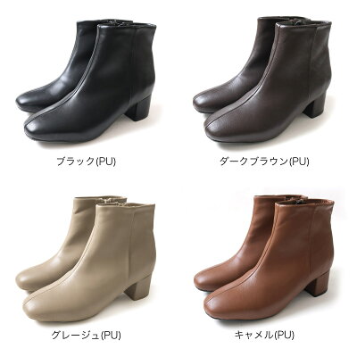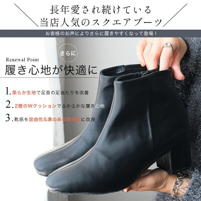 【一部予約販売◆1月下旬入荷予定】【1/16 20時〜再販!早割】2019年秋冬新作! スクエアトゥショートブーツ 5センチヒール レディース 秋冬 サイドファスナー ショートブーツ ジッパー シンプル 太ヒール アンクル 低反発 スエード スムース ルリアンプラス