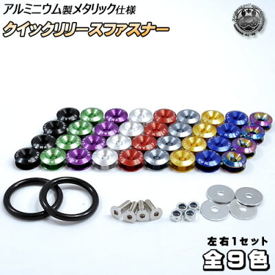 アルミ製 クイックリリースファスナー アルマイト メタリック仕様 左右分セット 4PCS ブラック グリーン パープル シルバー レッド グレー ゴールド ブルー チタン 【 スポコン USDM JDM エアロ バンパー フェンダー 止める パッチン ストッパー カスタム 】 エムトラ